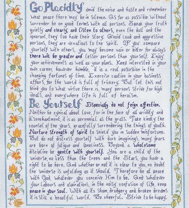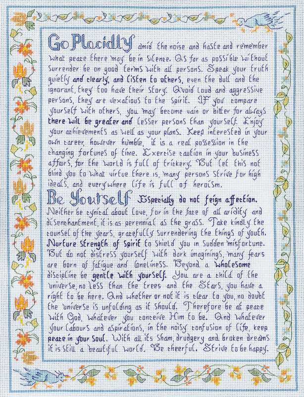 Blue Desiderata Sampler cross stitch verse