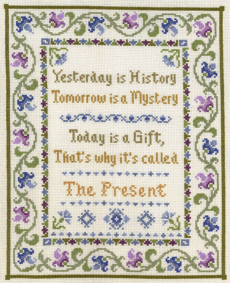 The Present sampler ~ a beautiful saying in a beautiful sampler.